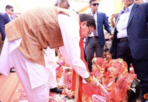 Kanya Pujan :- मुख्यमंत्री धामी ने सामूहिक कन्या पूजन कार्यक्रम में कन्याओं को पूजा