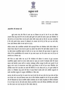 FakeLetter 🤥:-वसुंधरा राजे सिंधिया ने कहा उनके नाम से सोशल मीडिया पर वायरल हो रहा पत्र “फर्जी और भ्रामक” है