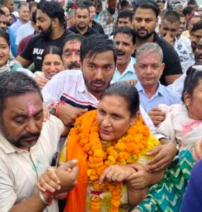 देहरादून जिला पंचायत चुनाव में मधु चौहान को हराकर बनी अध्यक्ष सुखविंदर कौर ।