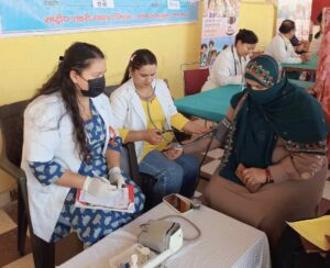 शिविर में अपर मुख्य चिकित्सा अधिकारी एन.एच.एम. डॉ0 निधि रावत ने आशा कार्यकत्रियों को घर-घर अभियान के तहत,
