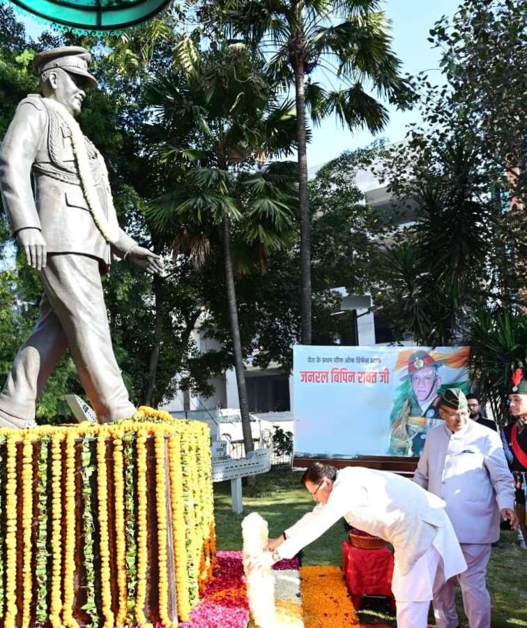 चीफ ऑफ डिफेंस स्टाफ स्व. जनरल बिपिन रावत की चतुर्थ पुण्यतिथि पर उनकी प्रतिमा पर पुष्पचक्र अर्पित कर श्रद्धांजलि दी।